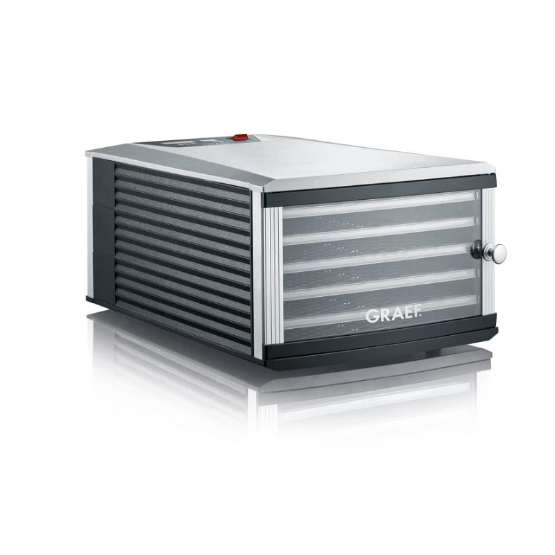 Element grzewczy, wentylator i termostat utrzymują stabilną temperaturę równomiernie rozprowadzoną w całym urządzeniu. Suszarka jest kompaktowa, szybka i zużywa bardzo mało energii, co czyni ją odpowiednią nawet dla najmniejszych barów czy kuchni.