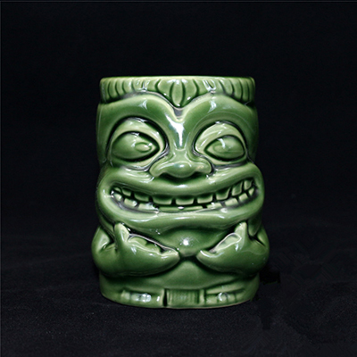 Ciesz się swoimi ulubionymi tropikalnymi koktajlami w stylu dzięki Tiki Mug Zielony z Uchem! Ten ręcznie szkliwiony ceramiczny kubek charakteryzuje się zabawnym, lecz tradycyjnym wzorem tiki oraz solidnym uchwytem, co ułatwia picie. Głęboka zielona glazura i wyraziste rzeźbienia czynią go idealnym dodatkiem do każdego baru tiki, oferując zarówno styl, jak i funkcjonalność.
